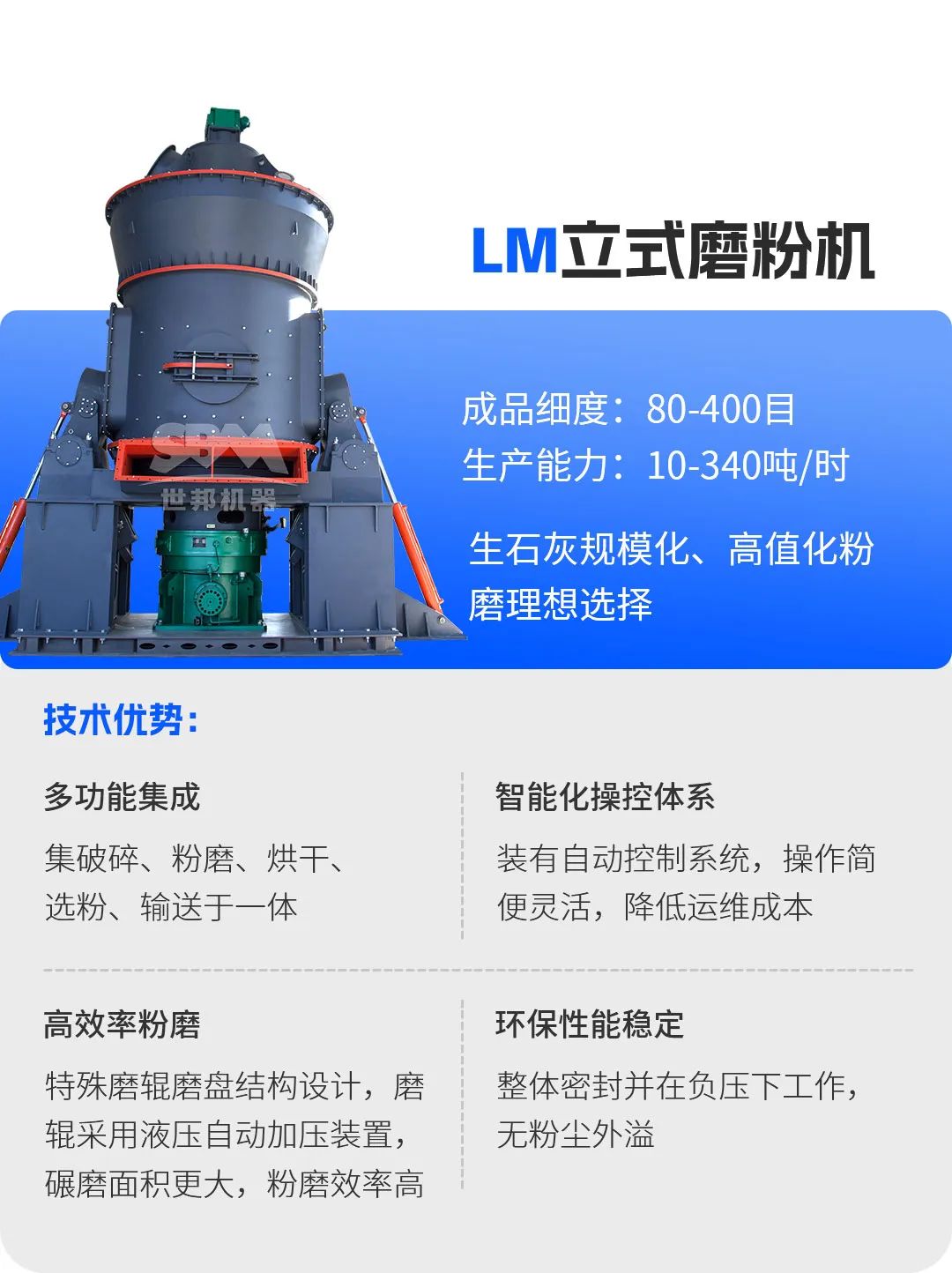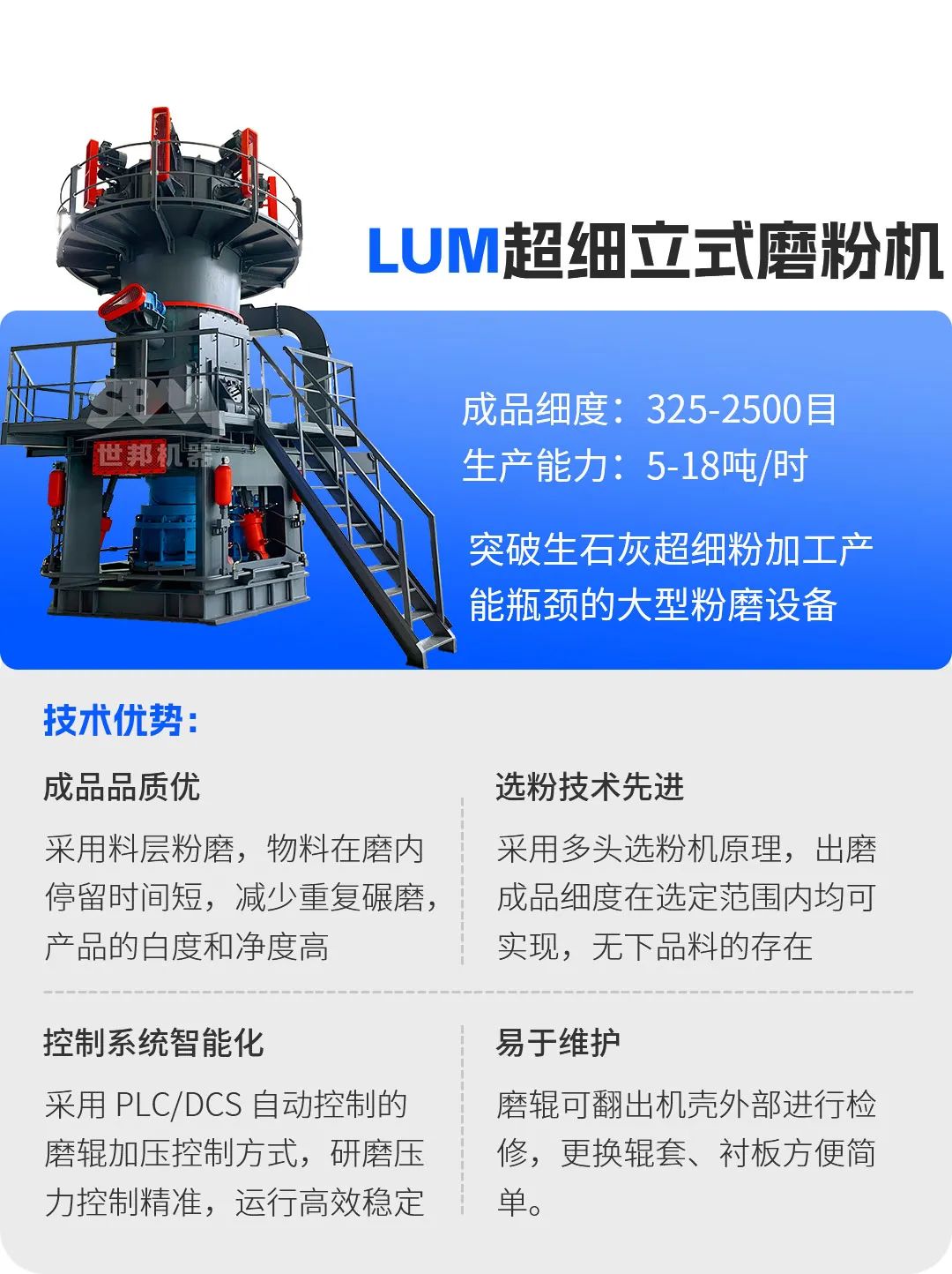作為工業粉磨領域的前行者,上海世邦依托近四十年技術沉淀,構建了涵蓋破碎、粉磨、分級、收塵的全流程智能裝備體系,為生石灰產業鏈提供定制化解決方案。
