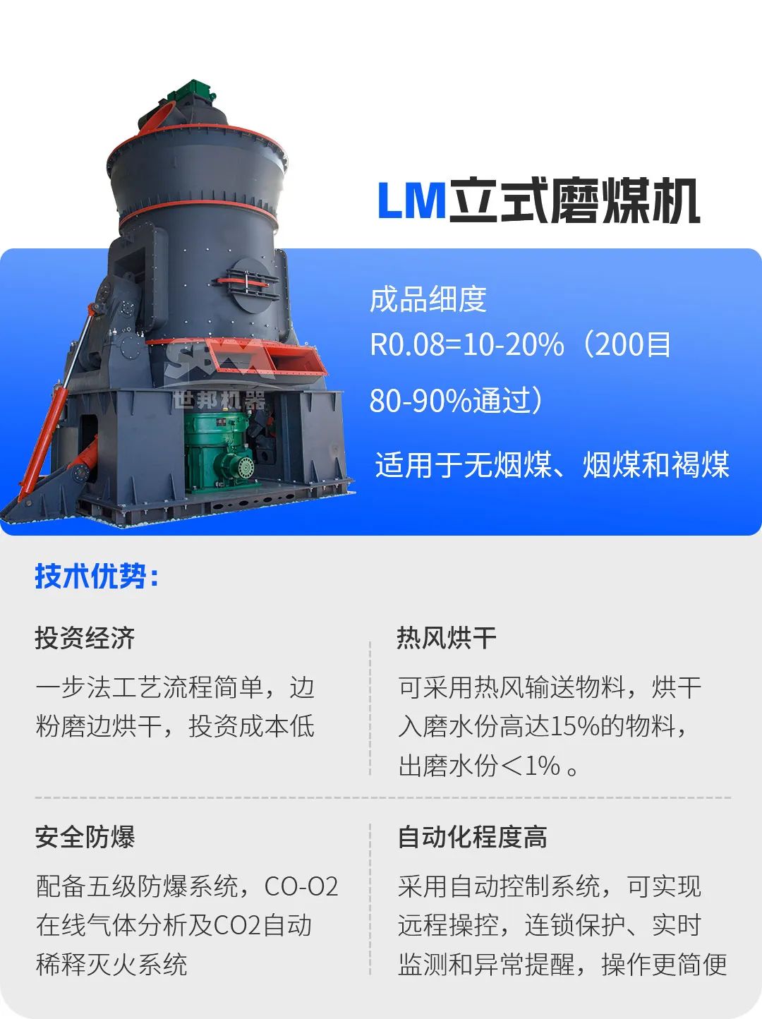 在生石灰煅燒過程中,煤粉質量直接影響石灰窯的熱效率與產品質量。上海世邦推出的LM立式磨煤機,專為石灰窯配套煤粉制備設計。